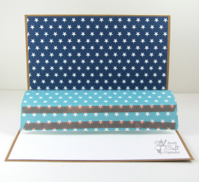 - · Then fold over and align end of scored piece at base and adhere to card base. (Making a second “step” which is attached to the first).